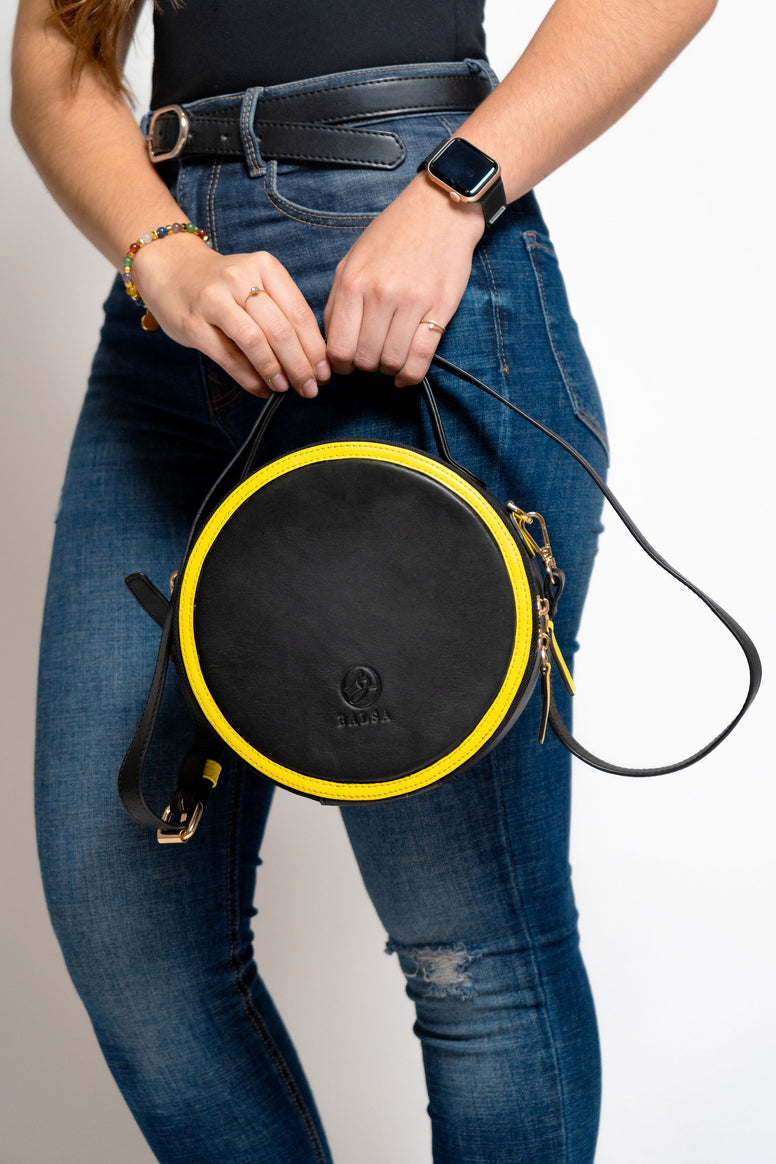 Dale un toque moderno a tu estilo con este bolso redondo en cuero genuino. Su diseño versátil fusiona elegancia y frescura, con un detalle en contraste que aporta personalidad y dinamismo. Perfecto para usar de día o de noche, su interior espacioso te permite llevar tus esenciales con comodidad.