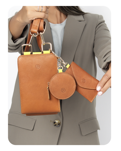 Un accesorio diseñado para mujeres prácticas y viajeras. El manos libres Ibiza combina elegancia, ligereza y funcionalidad, con compartimentos para pasaportes, tarjetas y celular. Incluye accesorios desmontables para usar juntos o por separado, adaptándose a cada ocasión con estilo.